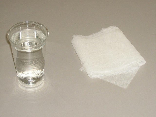 まずは箱ティッシュ2枚を、水の中に入れます。