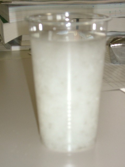 かき混ぜること一分間、その結果はこんな感じです。