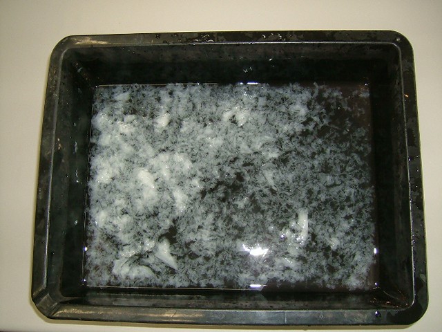 これも黒い容器に入れてみました。トイレットペーパーはどろどろに溶けている様子です。