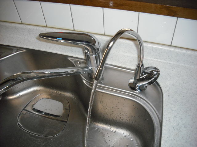 シンク脇に専用の水洗金具取付け漏れなど無いか確認します。