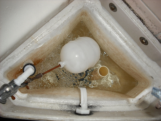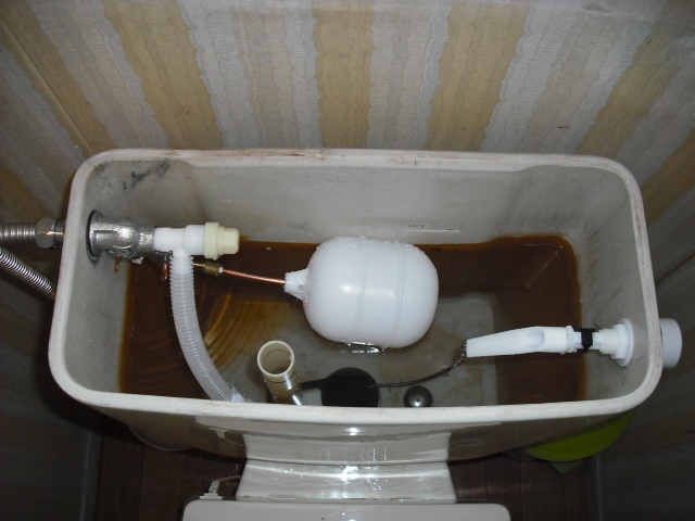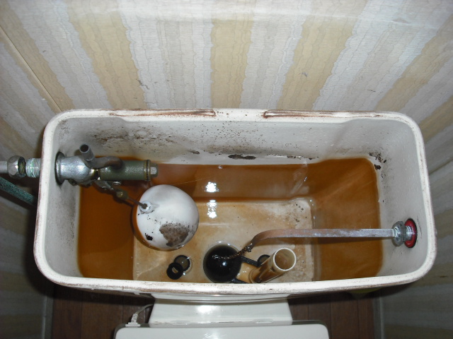 この年代のトイレタンクは内部に発砲ウレタンやスチロールの防露材が無いため