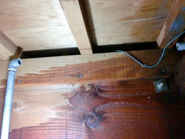 天井裏を覗いてみると2階の床を支える胴差しがビショビショに濡れており