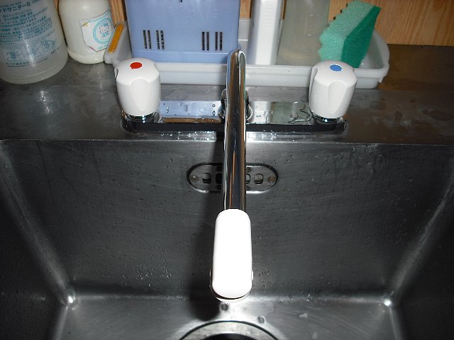写真のモデルはノンライジングタイプの混合水栓ですから