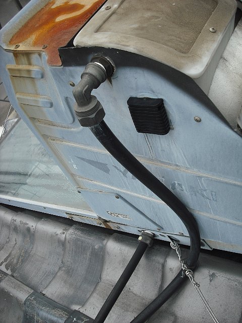 湯が降りてくるホースに水道水が逆流して屋根タンクに水を送り込んでいる状態です。