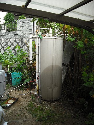 既存温水器は20年以上前の製品で本体内部からの漏水でした。