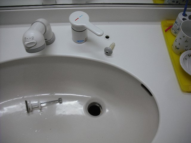 岡山市中区東川原のお客様から洗面台の栓を操作するレバーが壊れたという依頼をいただきました。