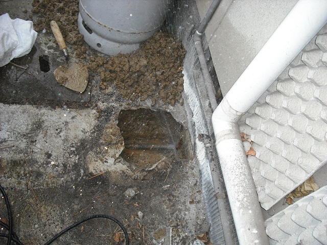 モルタルをハツリ漏水箇所を発見したところです。