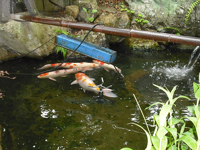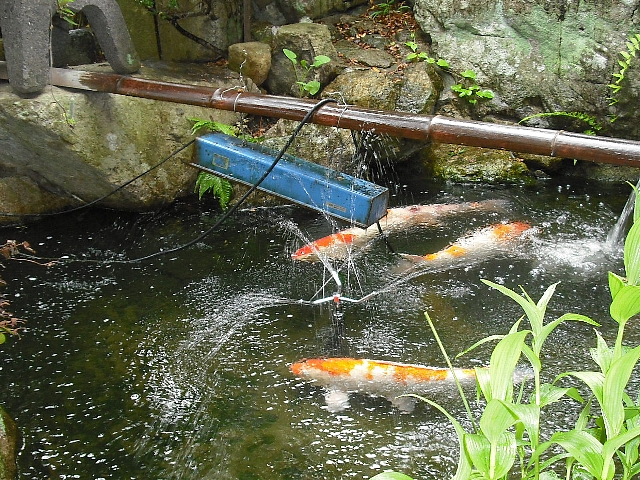 今回の漏水は屋外にある池の噴水へ至るバルブ不調で完全に止まらなく