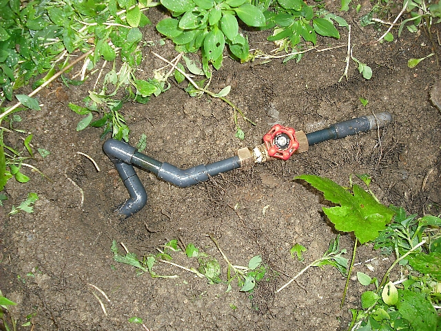 前回作業時に屋外配管と離れの茶室、母屋へ至る配管にそれぞれ止水バルブを