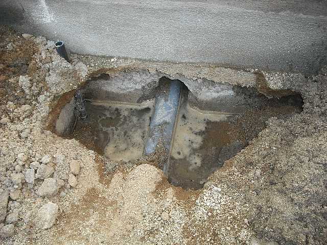 (既設給水配管を掘出中)