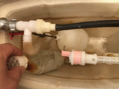 今回は2件の対応事例を まとめてご紹介します(*゚▽゚*) 1件目は岡山市北区下伊福のお客様から 「トイレの蛇口から水が出っ放し!」と ご依頼をいただきました。 原因は節水のために入れておいた ペットボトルが引っかか