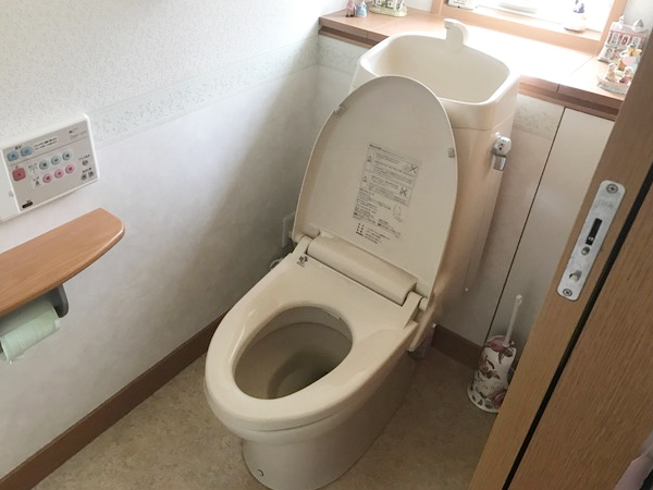 小田郡矢掛町東川面のお客様から 「トイレが水漏れしている!」と ご依頼いただきました。 INAX(LIXIL)の一体型トイレで 15年程使われているため交換することになりました。 新しいトイレ