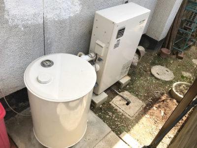 新しい省エネタイプの石油給湯器です。