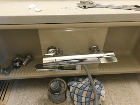 混合水栓を交換し 作業は終了です (^_-)-☆