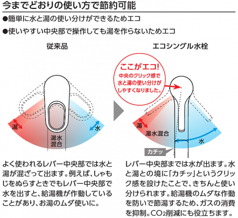 「エコシングル水栓」と言ってお湯が節約できる蛇口です。