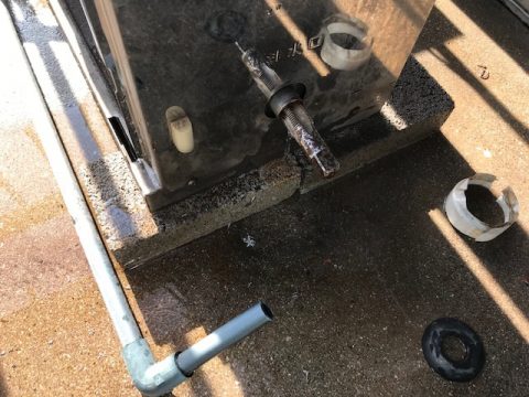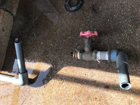 配管のネジ山部分が腐食してポッキリ折れていました。(+_+)