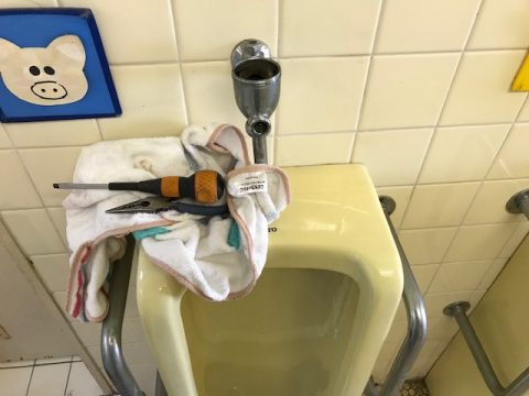 倉敷市児島唐琴で「小便器上から少し水漏れがする」と