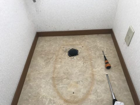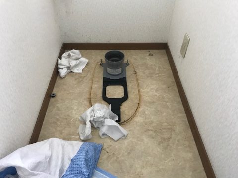 トイレを付ける前に汚れをお掃除していきます。