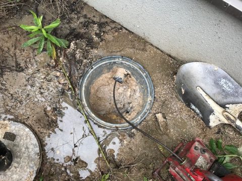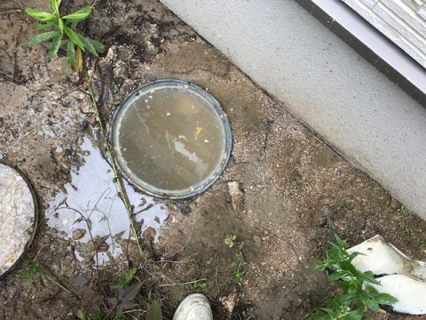 「台所の外の汚水マスが溢れているので見て欲しい」と