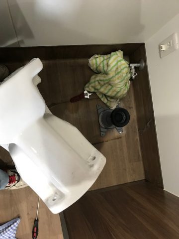 便器を脱着して異物を取り出す作業になります。