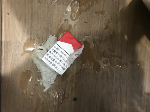 便器の底に引っかかっているタバコの箱を発見!