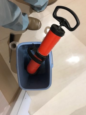 ①便器の中で紙や汚物が詰まる→ローポンプ