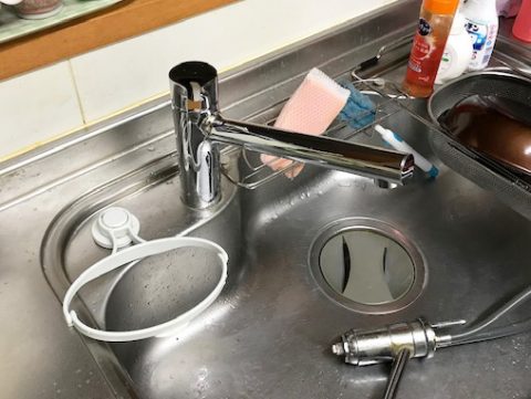 古い水栓は取外して新しい水栓に取替しました。