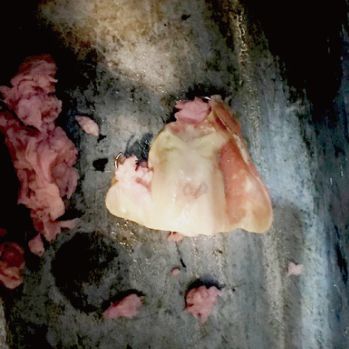 異物にトイレットペーパーなどが絡みついている状態で