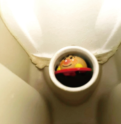 便器を取外してみると排水口にスッポリとはまっているアンパンマンのおもちゃを発見しました。