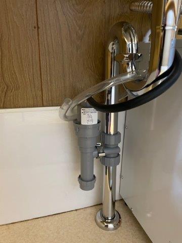電気温水器に付属の部品を洗面器の排水トラップに取り付けます。