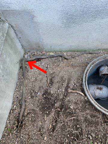 マスのまわりにある木の根がちょうど排水管のあたりで地面に入り込んでいます。