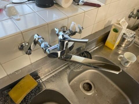 お伺いしてみると、壁付2ハンドル混合水栓をお使いでした。