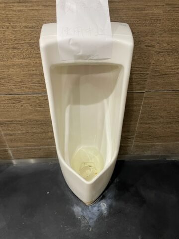 トイレ使用禁止!商業施設などでこんな張り紙と男子トイレの小便器が詰まっているのを時折見かける事があると思います。