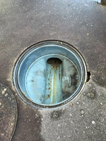 岡山市中区のお客様から屋外マスの蓋が浮いているとご依頼がありました。