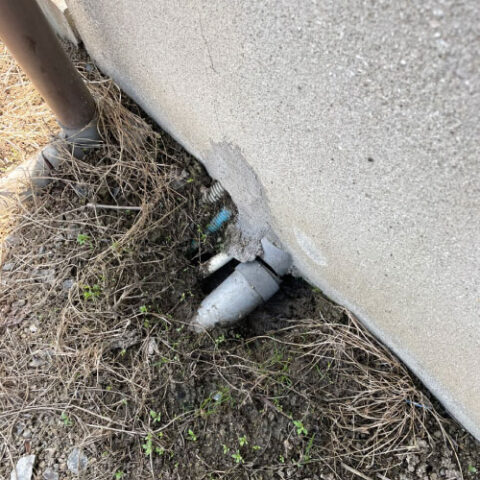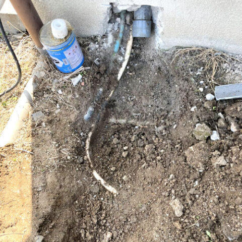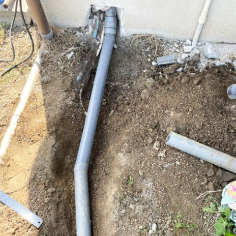 岡山市南区のお客様から外のパイプから水漏れしてると依頼があり、お伺いしてみると台所の排水管がバックリ割れていますʕ⁎̯͡⁎ʔ