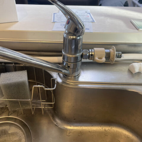 こんにちは。本日は倉敷市中島のお客様より台所蛇口の分岐水栓をの取り外して欲しいとのご依頼があり、伺いました。