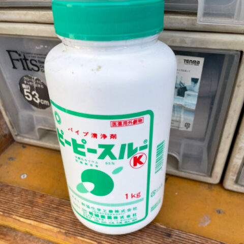 見てみると、マスの中で油がつまっていたためピーピースルーとトーラーを使用してつまり抜きの作業をおこないました。