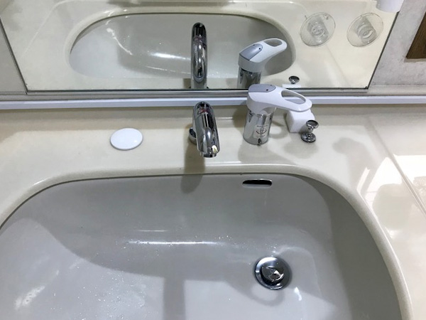洗面用台付シングル混合水栓TL834EGRに交換しました!