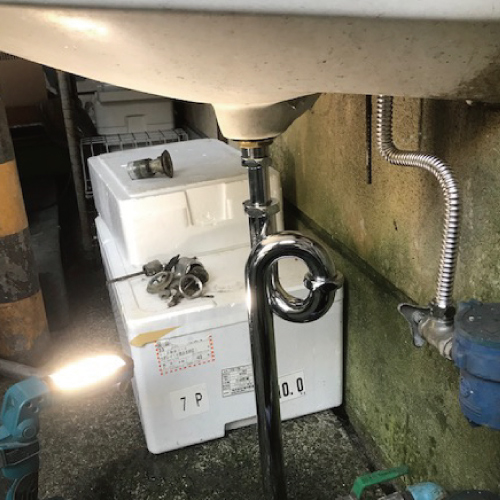 岡山市南区に在中されているリピートのお客様から「洗面台の蛇口、Sストラップ交換と石鹸設置をしてほしい」とご依頼がありました。