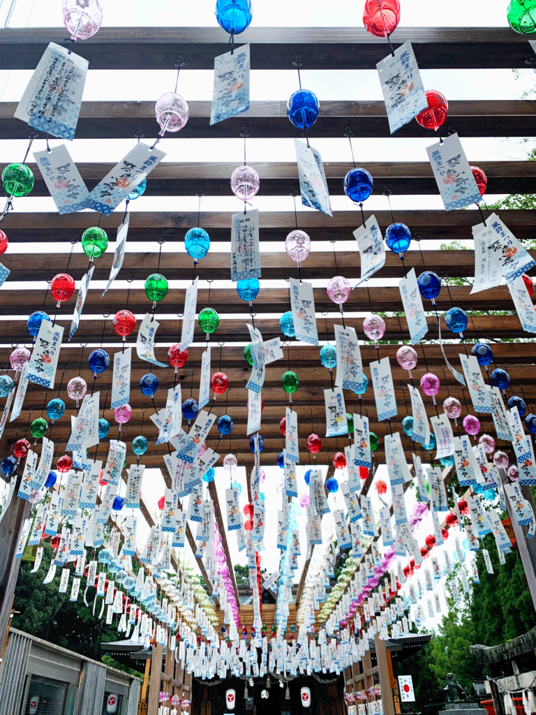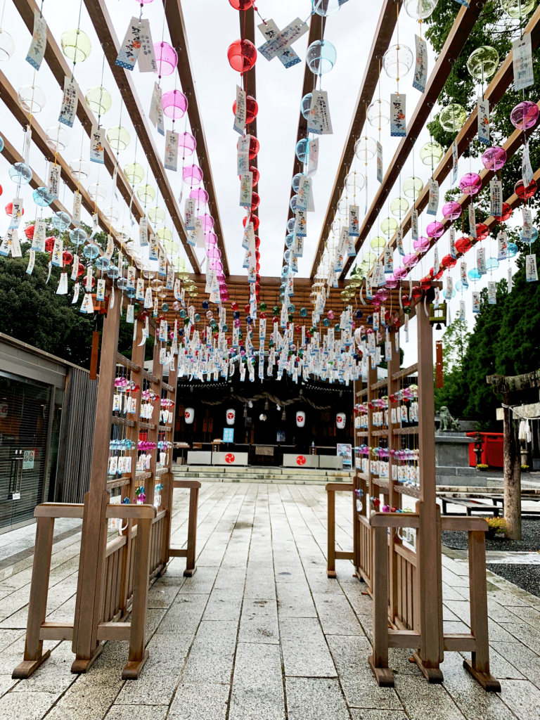 夏になると風鈴の音色で優しく出迎えてくれる恒例のまつりで、3,000個以上のガラスで出来た風鈴が短冊と一緒に幻想的に風に吹かれて揺れているのが印象的でした。
