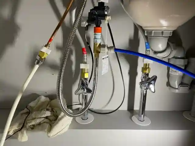 既存設置されている浄水器との新しく購入されている浄水器へ入れ替えの為、台所下の配管も確認します。