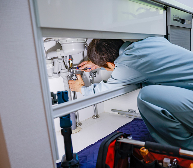 台所まわりのトラブルでお困りの際は、ぜひご相談ください。蛇口からの水漏れ、排水の詰まり、シンク下からの水漏れ、異臭、配管の破損、水が出ない・止まらないといったあらゆる不具合に対応いたします。豊富な部品在庫と迅速な取り寄せ体制により、スムーズな修理が可能です。経験豊富なスタッフが現場の状況に応じて、的確かつ丁寧に対応。法人様向けの業務用キッチンにも対応しており、修理・定期点検・保守契約のご相談も承ります。地域密着で安心の対応体制。24時間365日受付・最短20分で現場に駆けつけます。お見積り・キャンセル無料で、お気軽にご利用ください。