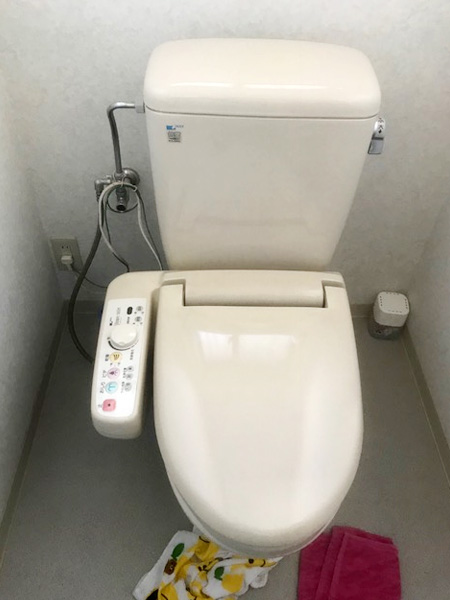 岡山市南区西高崎のお客様から「トイレのウォシュレット、浴室蛇口の切替部分と台所蛇口から水漏れする!」とご依頼をいただきました。 まずウォシュレットはTOTO製の新しいものに交換しました(*^▽^*) 【作業前】 【作業後