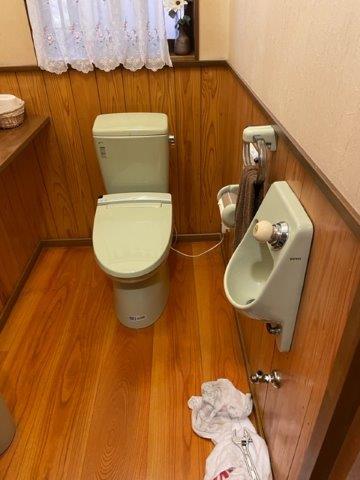 瀬戸内市のお客様からトイレ交換工事をご依頼頂いた際、「小便器と手洗器を撤去して欲しい」とご依頼を頂きました。 トイレの右側にある壁に埋め込みの手洗器 あまり使用していないのですが床へ水漏れするようになってお困りでした。