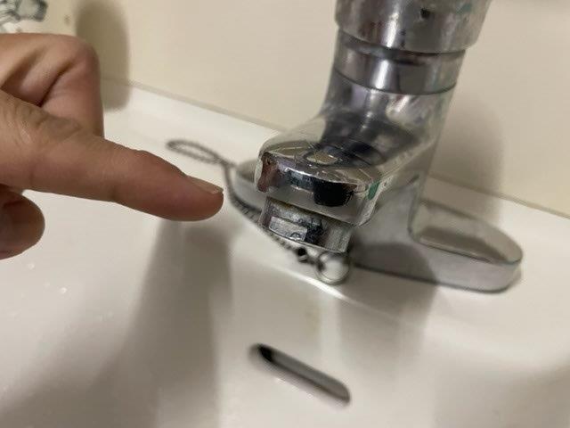 岡山市北区南中央町のお客様より洗面所と台所の蛇口交換のご依頼を頂きました。 洗面所のレバー式蛇口が老朽化で水漏れしています 長い間お使いの末、蛇口の先端に穴が開いてしまいました。 メーカーはTOTO製 品番TLF30UG