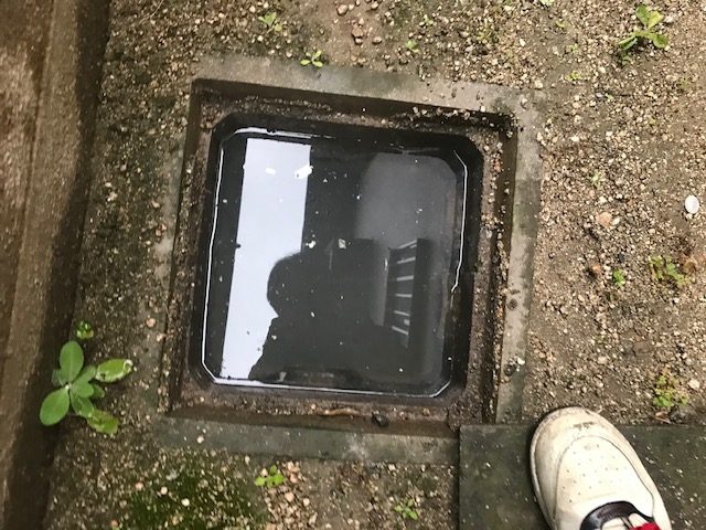 「排水が流れない」とお電話を頂きました。屋外の排水マスを空けてみると配管部分の上まで水が溜まっていて流れません排水管の途中で詰まっているようです。 つまりの症状からトーラー作業(ワイヤークリーナー)で対処料金をお客様にお