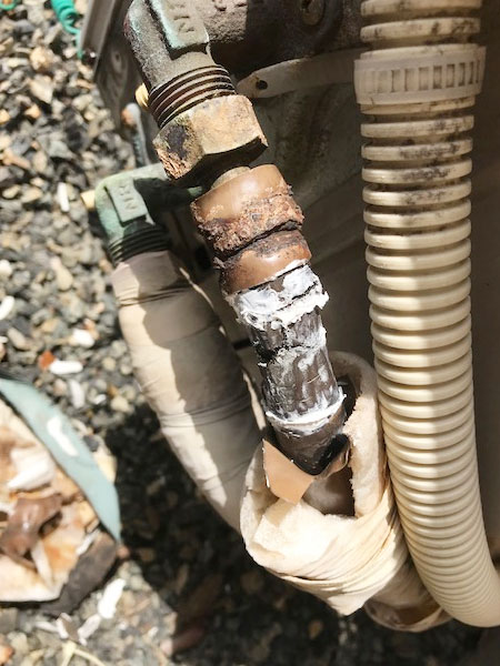 玉野市向日比のお客様から「エコキュートの配管から水漏れがしている!」とご相談いただきました。 こちらは13年以上使用されているそうです。 調べてみると、ユニットとタンクをつなぐ配管に亀裂がありました。 今回は ヒートポン […]