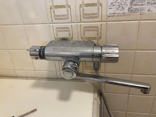 こんにちは。本日は東区のお客様より浴室蛇口から水漏れしているとのご依頼があり、伺いました。 お使いの蛇口はKVKの「MS6115-#9」サーモスタット式シャワーです。 古い蛇口は部品も廃盤のものが多くなっています