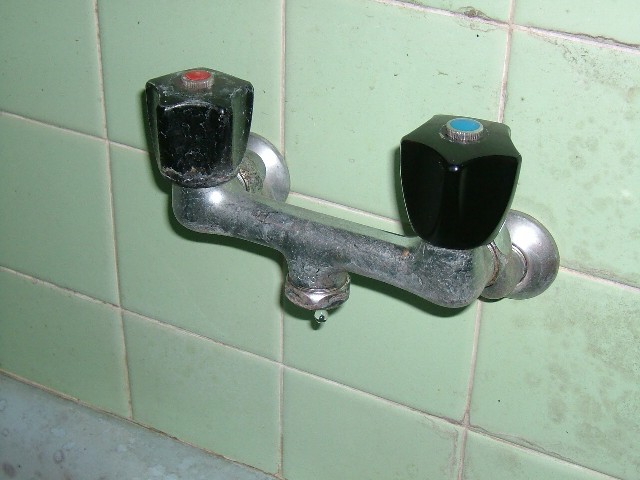 今回はバス水栓金具交換事例を2件紹介します。 1件目は総社市清音のお客様 2バルブタイプバス水栓金具です。 内部部品磨耗による止水不良から水栓金具そのものを交換する事になりました。 交換は点検口から行いますので通常の混合