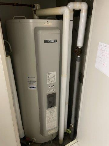 岡山市北区西古松のお客様から「電気温水器の逃し弁から水漏れして電気代が上がったので見て欲しい」と電気温水器の不具合でご依頼を頂きました。 お伺いして調査です。 約20年前に取り付けた電気温水器です。 水圧が低いので調整を